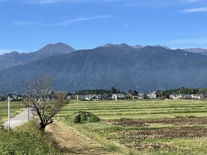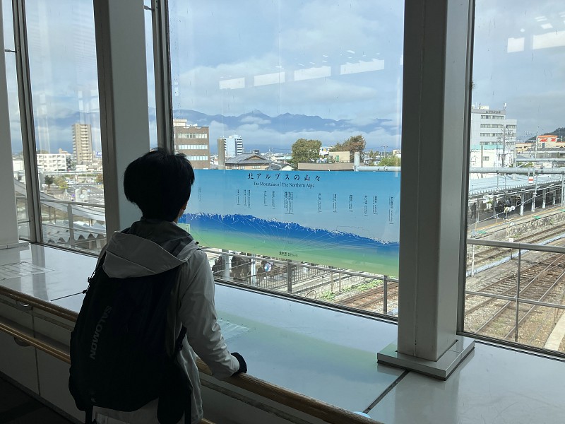 最終日駅に荷物を置き、大糸線で安曇野へ 駅舎から北アルプスの山並み |