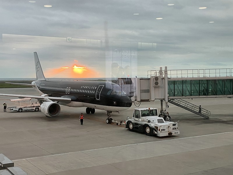 早朝、羽田からスターフライヤー機で出発 |