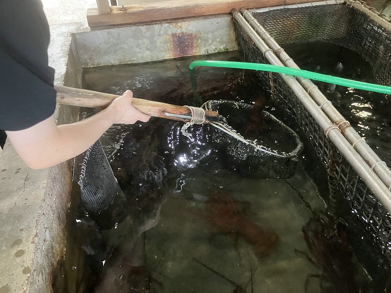生け簀の伊勢海老をさばいてくれます |