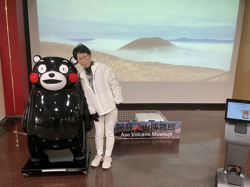 阿蘇火山博物館で「くまもん」と一緒 |